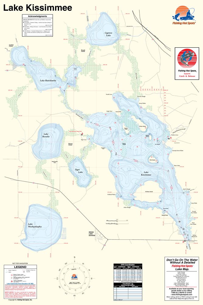 Lake Kissimmee, Florida Waterproof Map (Fishing Hot Spots)