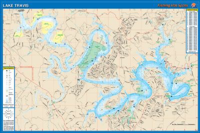 Lake Travis, Texas Waterproof Map (Fishing Hot Spots)