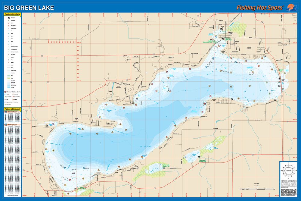 Big Green Lake (Green Lake County), Wisconsin Waterproof Map (Fishing Hot Spots)